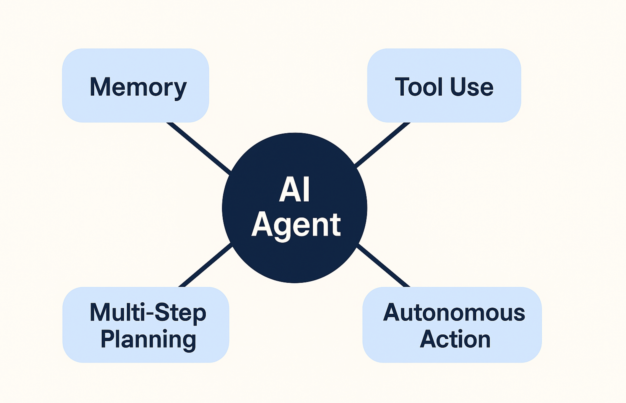 AI Agents are capable of chaining actions to reach a goal (e.g., find a product → compare prices → order item). This involves reflection, self-critique, chain of thoughts, and subgoal decomposition.